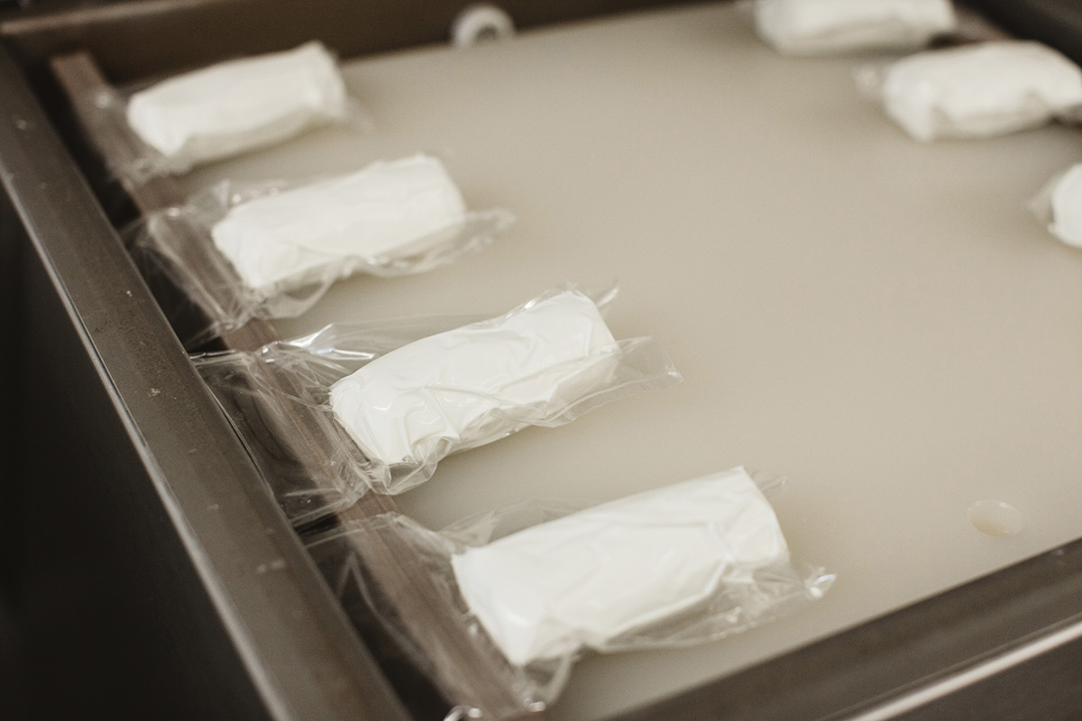 By the end of the day, the cheese is vacuum sealed, labeled, boxed and put in the walk-in cooler for weekly deliveries to our local restaurants, retail stores and distributors.